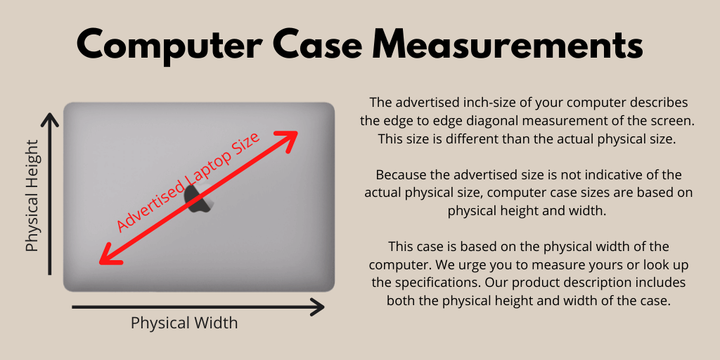 This 15"; padded computer case is made of coated canvas with natural leather details. In order to pick the right size for your laptop, measure the actual horizontal and vertical length of your computer which is often very different than the advertised laptop size (which is based on a diagonal screen measurement). Is your laptop 15" or less across? If so, this is likely the size you need.