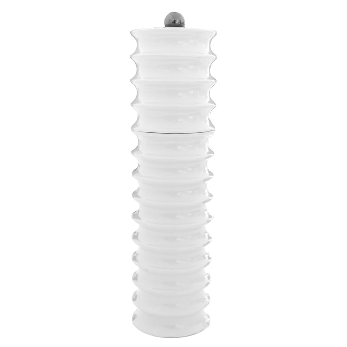 The White lacquered Twister salt mill, pepper mill is suitable for either Salt or Pepper. Featuring a scooped concave scallop shape.