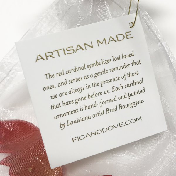 - Pre-wrapped in gift bag with Fig & Dove tag sharing the meaning of the cardinal