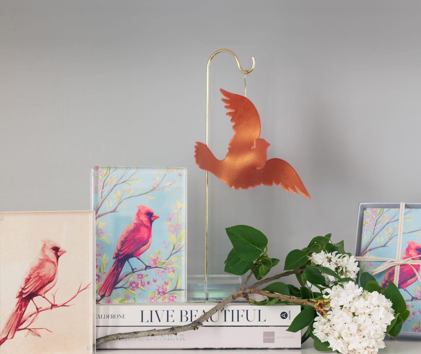 Designed exclusively for Fig & Dove, the Acrylic Ornament Stand is stylish way to display your favorite acrylic doves, cardinals or any favorite keepsake ornament. As useful as it is beautiful, this display piece will fit seamlessly with any décor.