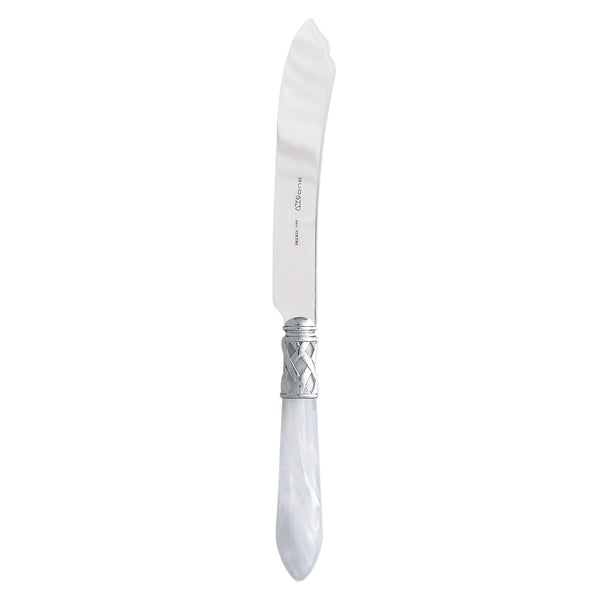 The Aladdin Brilliant Cake Knife features elegant pearlized handles with the strength of high-grade acrylic and 18/10 stainless steel. This piece is also available in our antique finish.