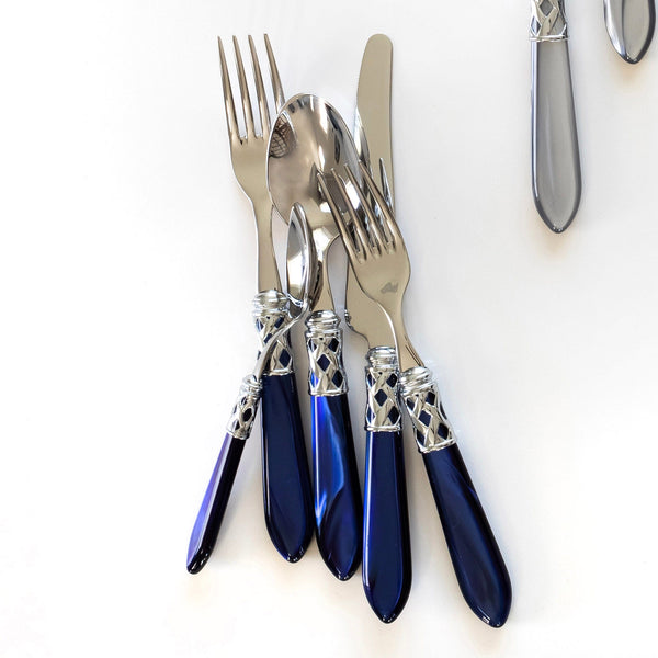 The Aladdin Brilliant Five-Piece Place Setting features elegant pearlized handles with the strength of high-grade acrylic and 18/10 stainless steel. The brilliant finish on the handle has a sophisticated, updated look.