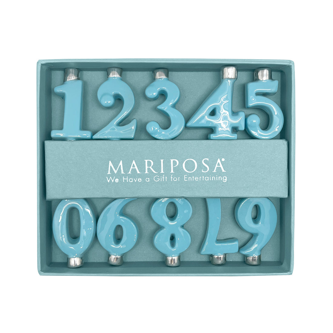 Celebrate birthdays and anniversaries for years to come with our fresh Aqua Candle Holder Set. Set includes numbers 1-10 in a petite box, all beautifully handcrafted to last through the years. A customer favorite baby shower gift! Handcrafted from 100% Recycled Aluminum painted with food-safe enamel for a fashion forward touch.