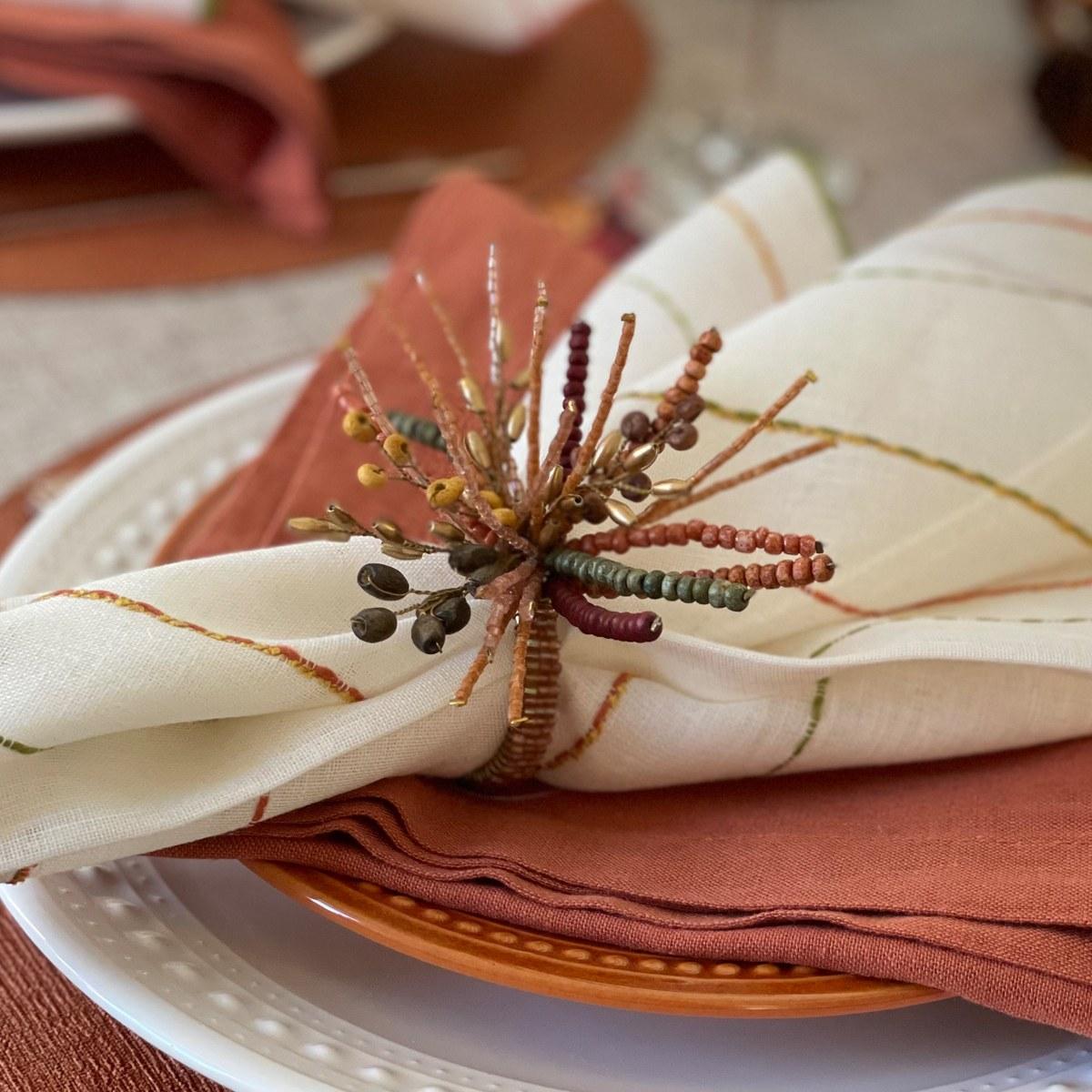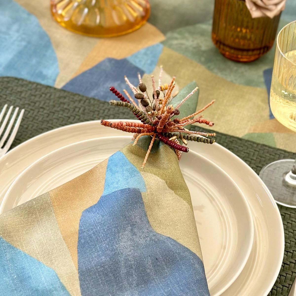 Introducing: Autumn Burst! With its captivating warm hues, this napkin ring captures the coziness of the Fall season. Perfect for an elegant autumnal gathering.