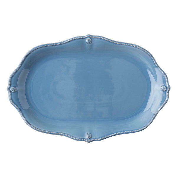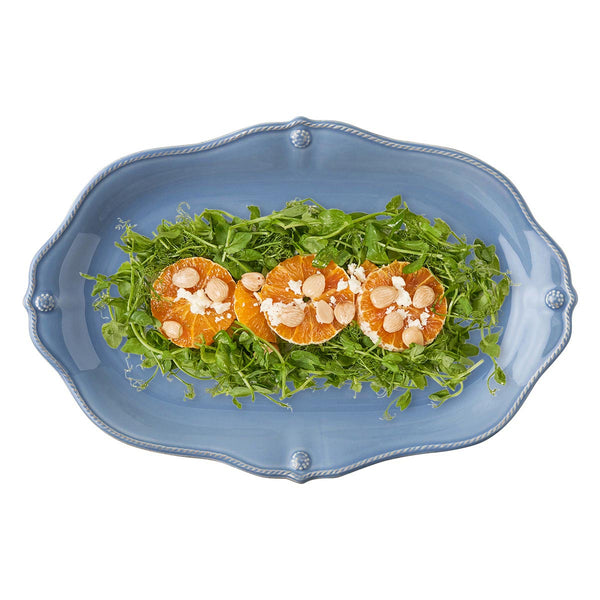 From our Berry & Thread Collection - Rimmed with a simple thread and adorned with a sprinkling of berries, this iconic dinnerware collection embraces historic motifs in a sublime blue hue. This 16 in. platter, with a subtly scalloped edge is perfect for serving a few or a feast, and goes seamlessly from oven to table.