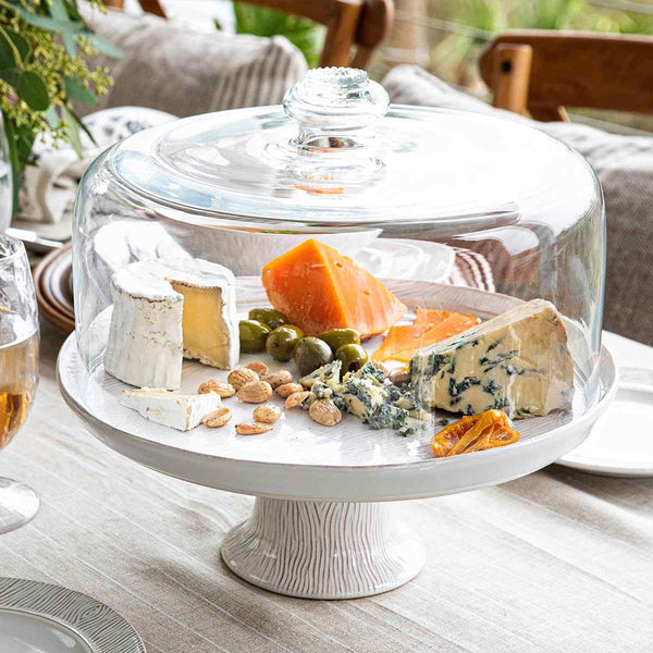 From our Berry & Thread Collection- For the consummate hostess, baker, and those who deem such items a necessity, not a whim...rejoice! This cake dome is constructed of our sturdiest mouth blown glass from Portugal, enabling you to infuse your everyday entertaining with a healthy (and sweet) dose of elegance.