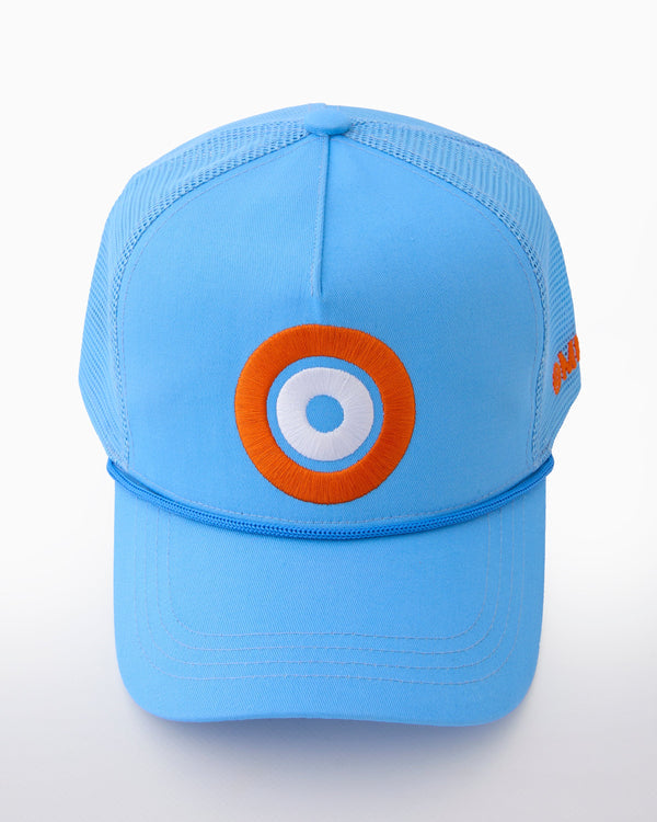 Make a statement on and off the mahjong table with the Oh My Mahjong Bullseye Trucker Hat! This classic foam trucker hat comes in a bold neon blue, featuring our beloved bullseye logo in neon orange for a striking pop of color. The breathable mesh backing, embroidered with OMM, keeps you cool whether you're playing under the sun or just out and about. Sporty, vibrant, and effortlessly cool—this hat is a must-have for any mahjong lover with a flair for fun style! Adjustable design ensures a personalized fit for all head sizes.