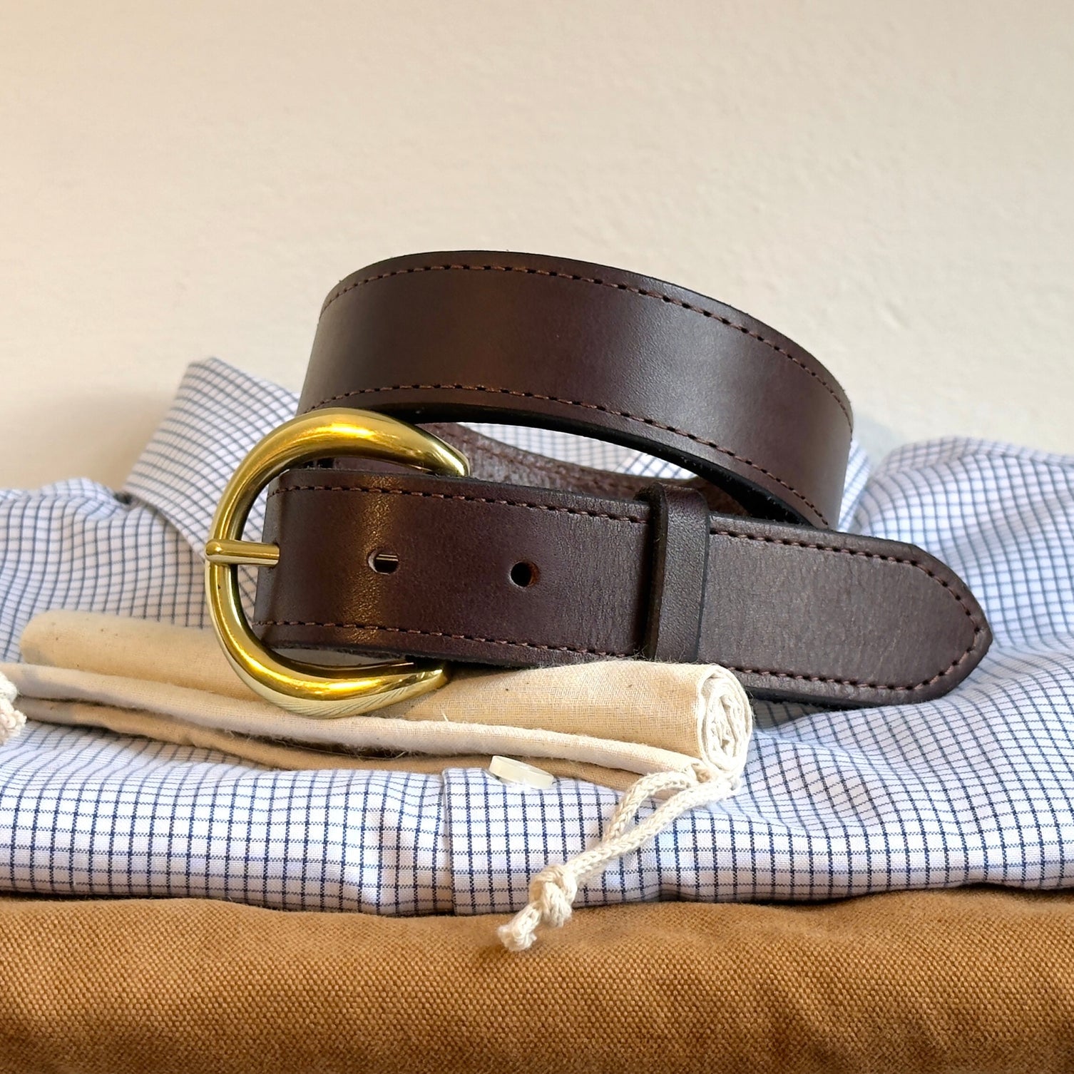 - Made in the U.S.A. with single-ply tanned leather. Each belt is cut from the hide and hand made to order. Finished belts are packed and delivered in a Brisket Supply travel pouch.