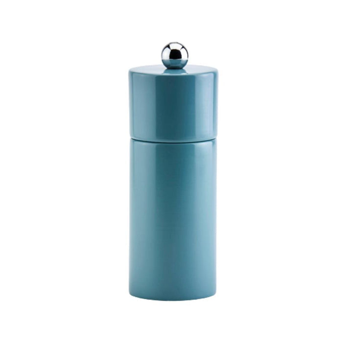 The Chambray Blue Lacquered Mini Column Mill is made from solid rubber wood, fully FSC certified, and finished with 8 coats of high gloss lacquer, hand polished between each coat.