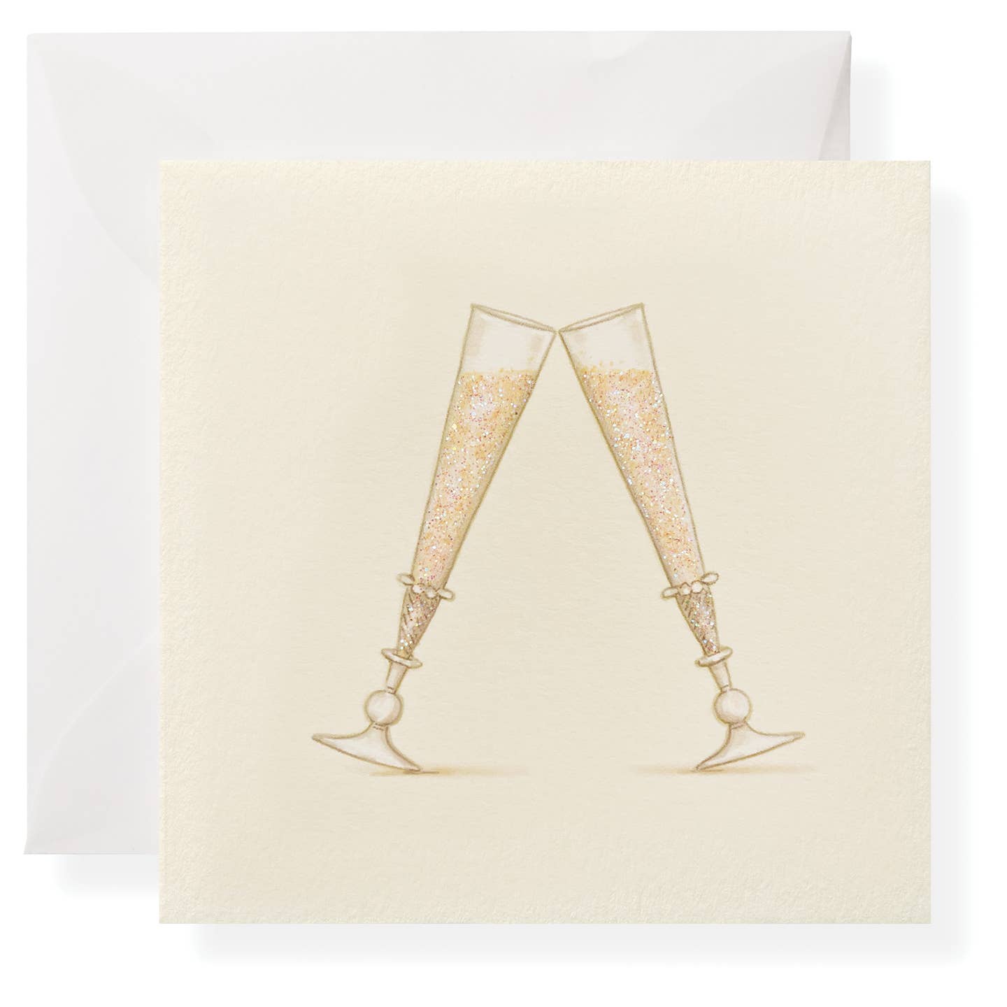 Our Champs gift enclosure is printed and hand-glittered in Memphis, TN. Hand crafted artwork, full color ink printed on natural white paper, hand-glittered, and paired with a vellum envelope. Book-folded enclosure card, blank on the inside. Paper color | natural white. Envelope color | vellum. Print process | full color. Embellishment | hand-glittered. Dimensions | 3 x 3 inches.