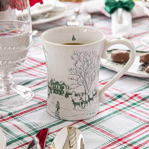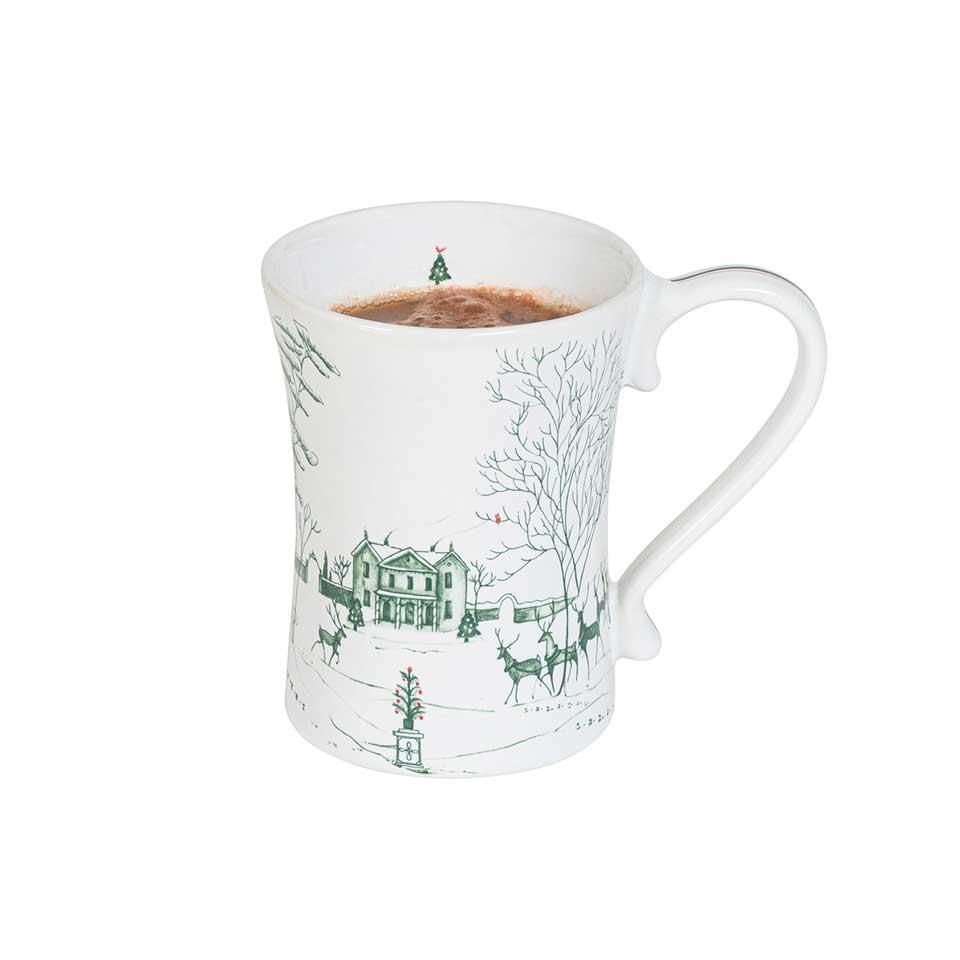 Coffee, tea, hot cocoa and hot toddy’s—every sip is a splash more special when served in this festive mug, with its evergreen illustrations (and merry pops of crimson accents!) of the Country Estate in winter.