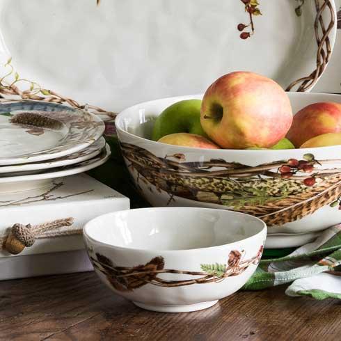 From our Forest Walk Collection- Encircled by a wreath of interwoven twigs, berries, and wispy feathers, the organic loveliness of this bowl may induce you to hit the hedgerows and return victorious with inky juice-stained fingertips and armfuls of blackberries - a taste of the season in a bowl.