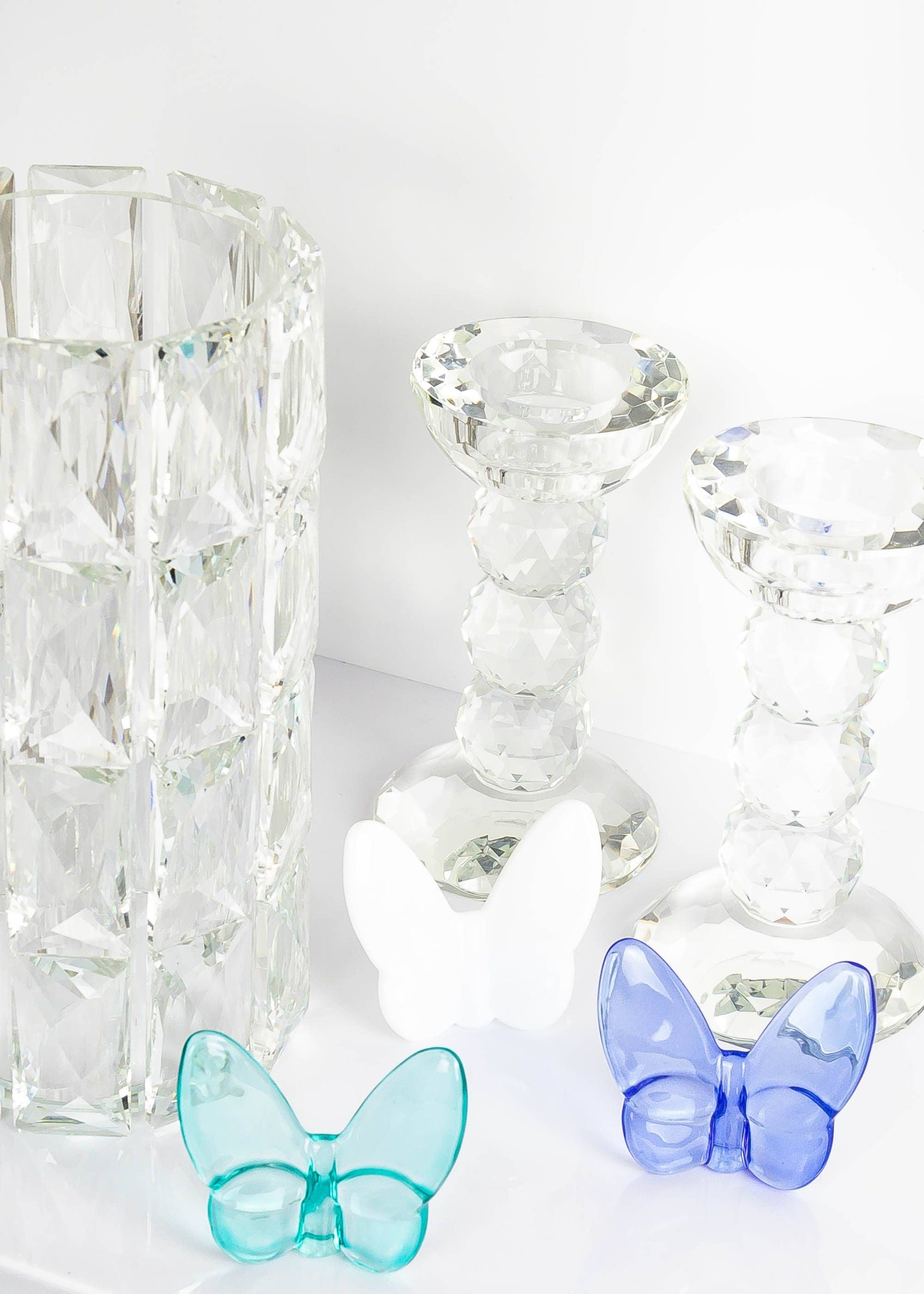Whether on your dining room table, on your bedroom nightstand or in your bathroom, these crystal butterflies add elegance & grace to any part of your home. Makes an exquisite gift for any and all occasions; such as birthdays, anniversaries, holidays, mothers day, housewarming etc. Comes in an array of colors, such as black, white, gray, blue, iridescent, clear, pink, gold, emerald green & more! Don’t see a color you like? Message us! We’d love to hear your suggestions! Made of high quality K5 crystal. Measures 2.9”L x 2.9”H.