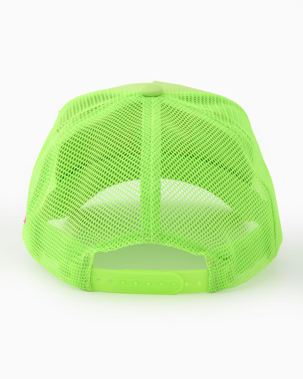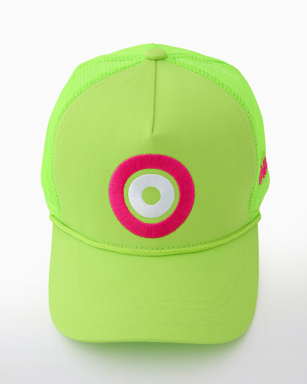 Turn heads at the mahjong table and beyond with the Oh My Mahjong Bullseye Trucker Hat! This highlighter green foam trucker hat is bold and playful, featuring our signature bullseye logo in hot pink for the perfect pop of contrast. With OMM embroidered on the breathable mesh backing, this hat keeps you cool while making a statement. Whether you're racking jokers (lucky you!) or just out for some fun, this hat is your go-to for some flair! Adjustable design ensures a personalized fit for all head sizes.