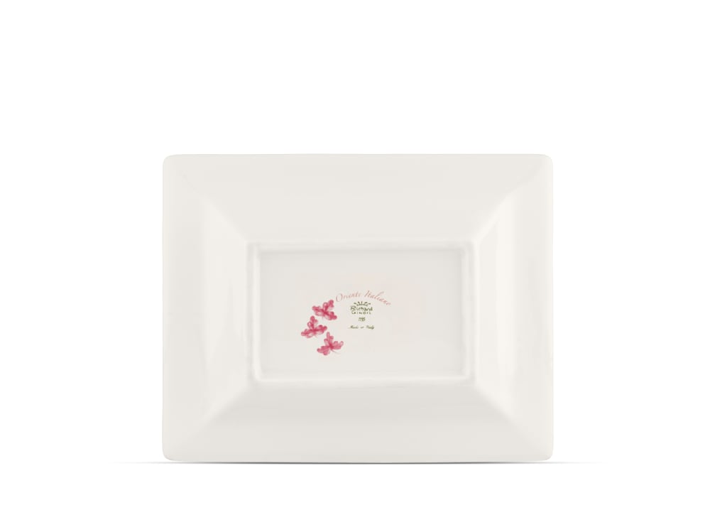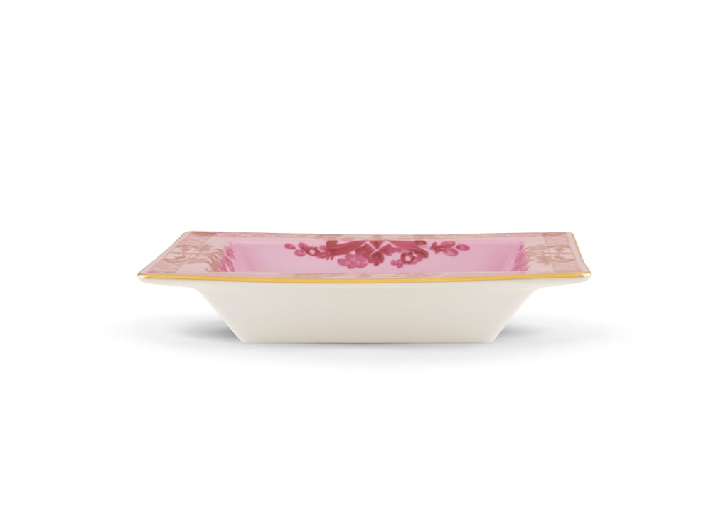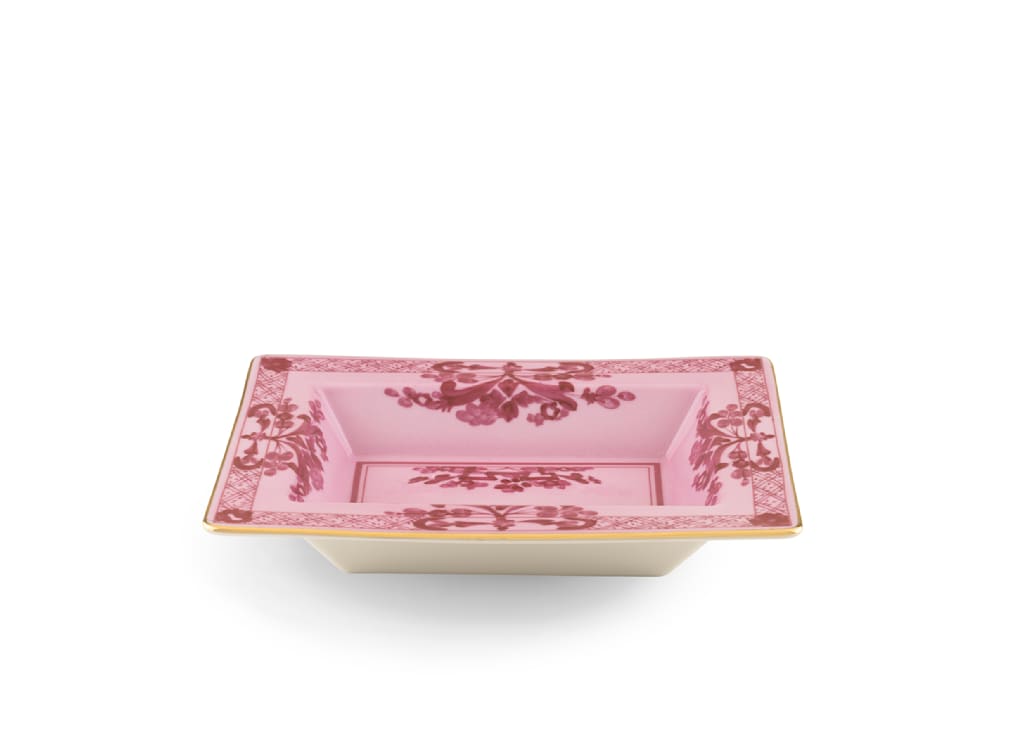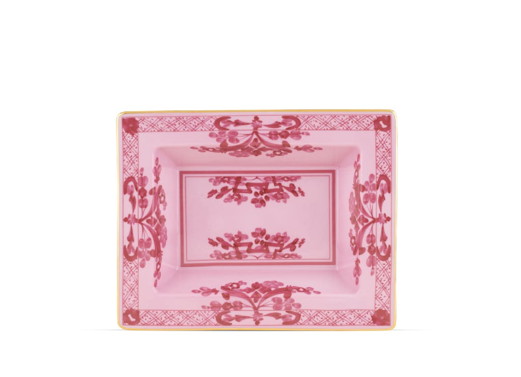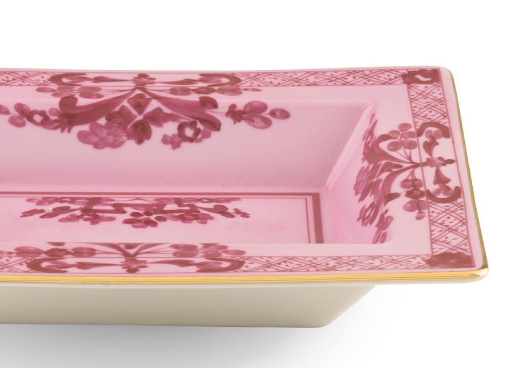 Porpora rectangular change tray in porcelain with gold threading. Oriente Italiano collection.