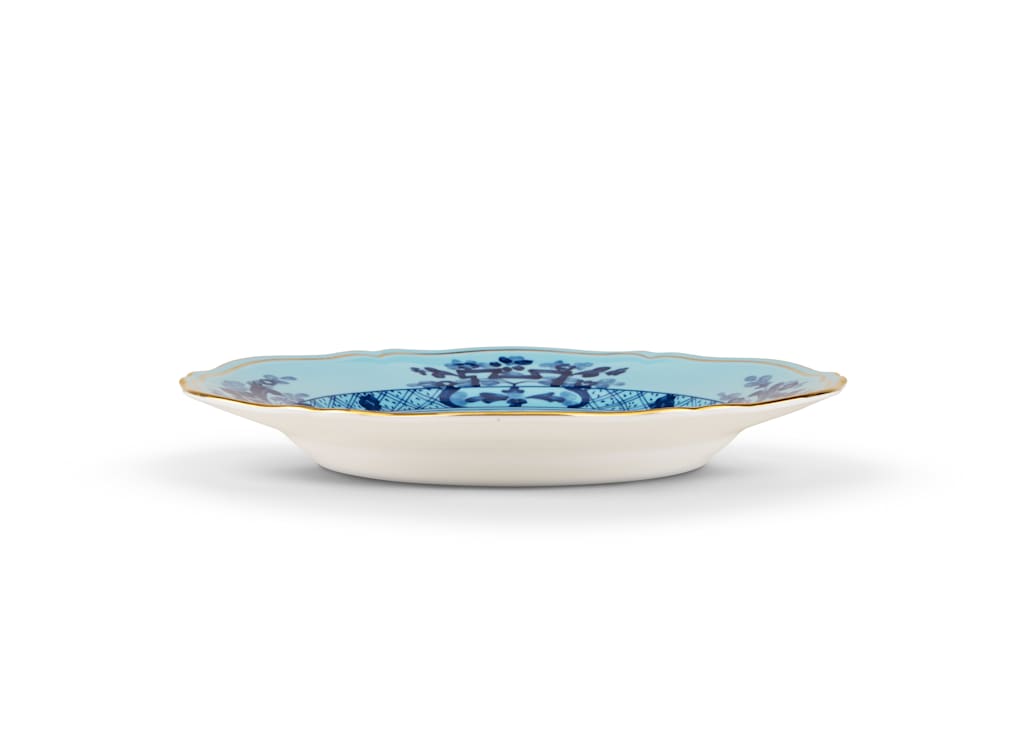 Distinctive gold threading frames the contours of the iconic Antico Doccia shape. The blue floral decoration stands out in contrast against the iris blue background, featuring the famous Garofano (Carnation), a time-honored motif among Ginori 1735 collections. It is designed to match the plate sets of the same line, for mise en place that is ever unique and inventive where each place setting can be individually styled with a distinctive combination of hues. Italian craftsmanship and oriental allure, passion and imagination, modernity and tradition, Oriente Italiano is a sophisticated and colorful collection of porcelain available in a complete range of tableware, tea and coffee sets and home accessories for the enjoyment of life's little moments in the unmistakable style of Ginori 1735.