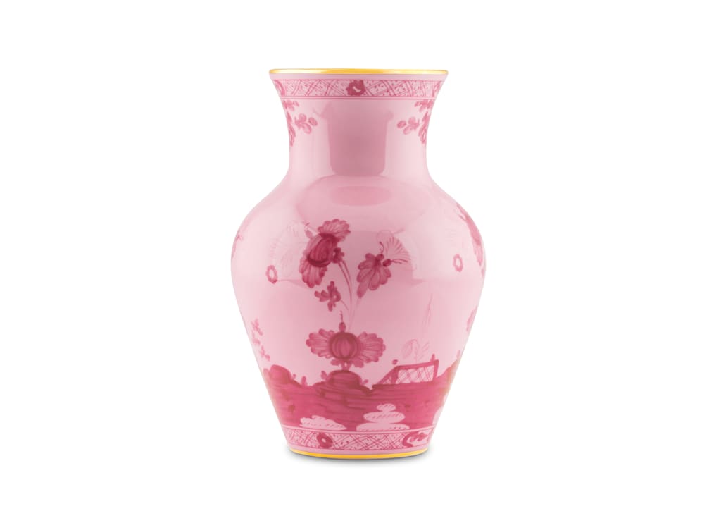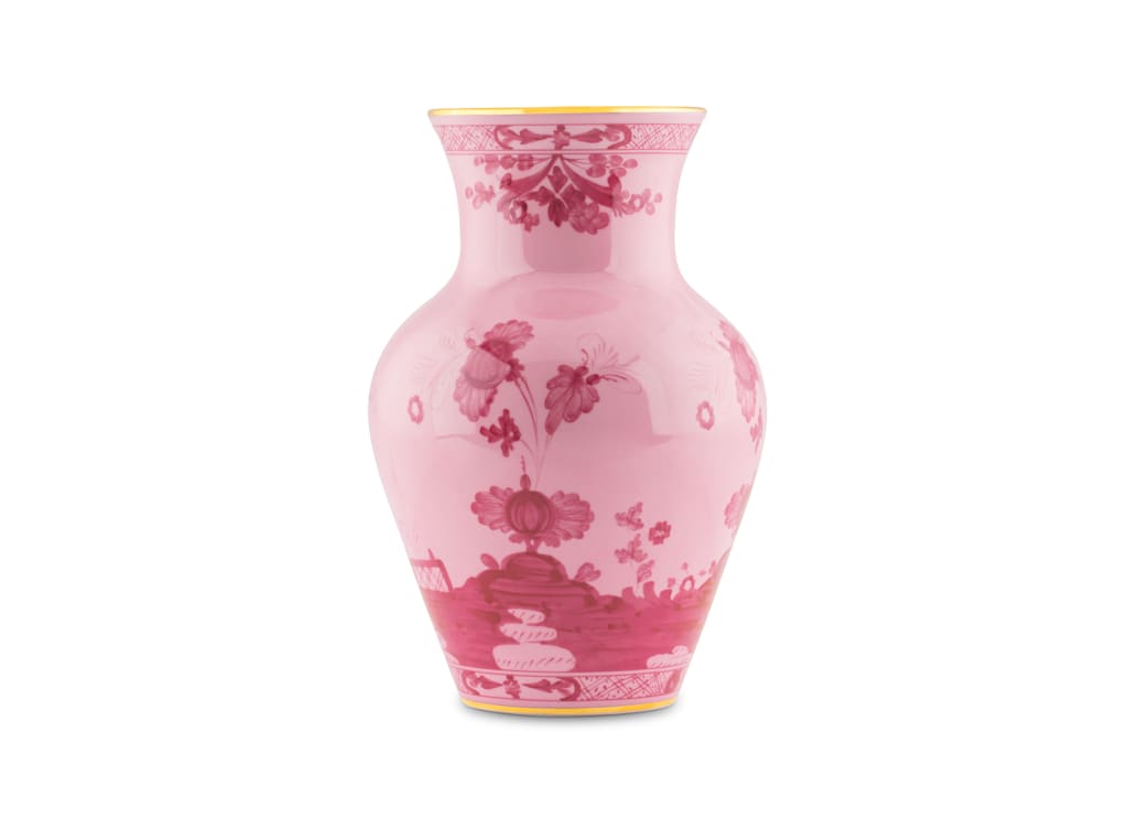 It is distinguished by its purple-pink coloring, against which the celebrated carnation motif stands out in contrast. Luxurious gold threading, a hallmark of Ginori 1735, brightens and enhances the design, for a collectible objet d'art that dazzles the eye at first glance. Oriente Italiano is a colorful collection of tableware, tea and coffee services and home décor that showcases a passion for creativity and the exploration of sophisticated arrangements for environments that are forever as unique as they are original.