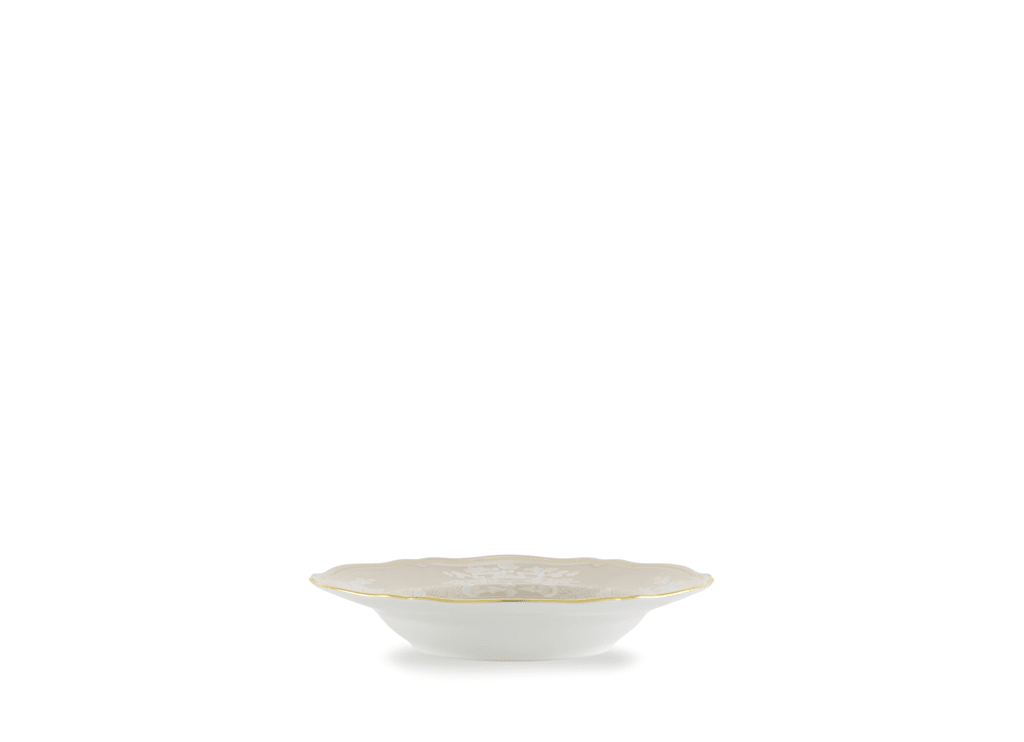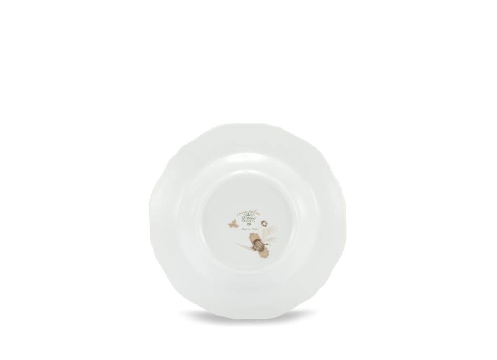 The Meringa beige-colored soup plate, embellished with white decorations and a gold threading, infuses a sense of comfort and refinement to the table, drawing an invitation to slowness and the pleasure of conviviality.