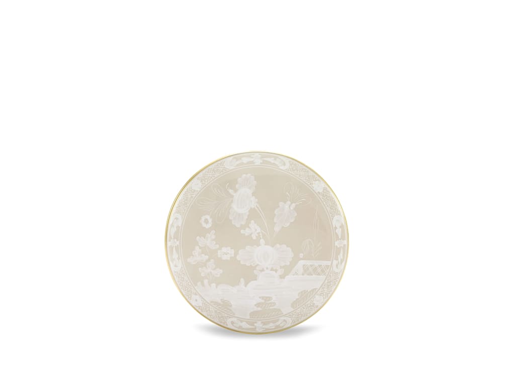 Trinket box beige with Meringa decoration and gold threading. Oriente Italiano Collection.