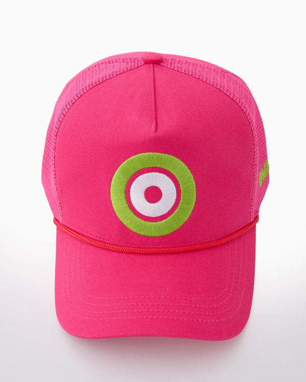 Bright, bold, and made for mahjong lovers! This neon pink foam trucker hat is the ultimate statement piece, featuring our iconic bullseye logo in highlighter green for an electric pop of color. The breathable mesh backing, embroidered with OMM, adds the perfect sporty touch while keeping you cool. Whether you're racking & rolling or just out and about, this hat is a must-have for adding a little extra fun to your game-day fit! Adjustable design ensures a personalized fit for all head sizes.