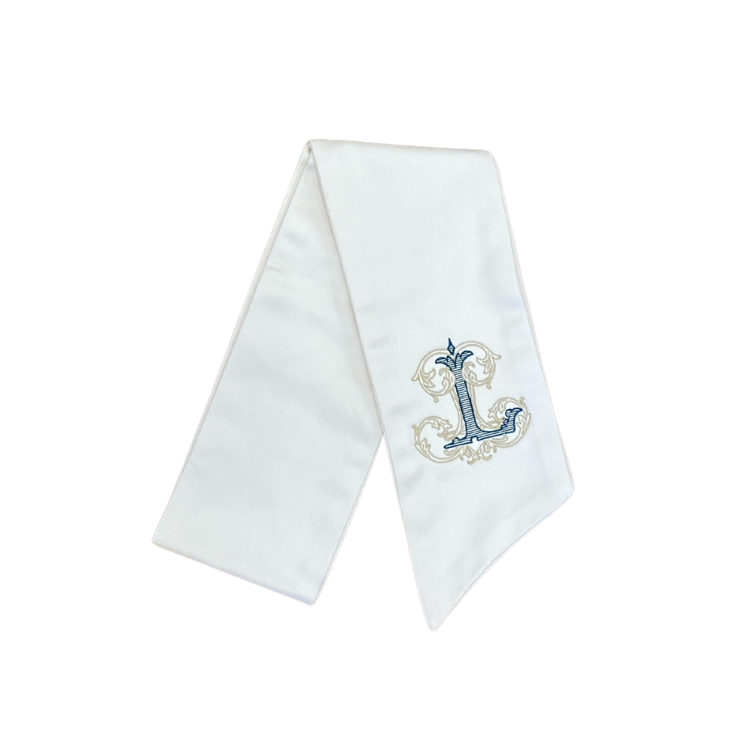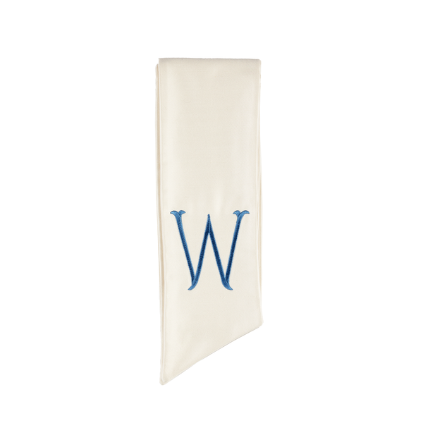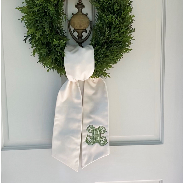 Our signature ivory wreath sash was created as a way to freshen up our front door greenery for a new season. A modern take on traditional wreath decor, this tailored wreath sash is a classic example of our pared-down aesthetic. We sell these plain for you to add your own personal monogram or seasonal design.