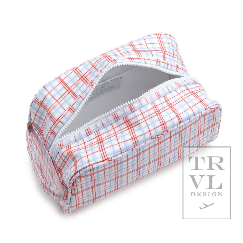 Simplify your packing routine and stay tidy with our smaller dopp kit Stow It. This soft sided bag with a carry handle is a mid size toiletry bag for toiletries, make-up, hair care – anything to have within arm’s reach while getting ready for your day. Comes with a slip interior pocket and is wipeable and machine washable.