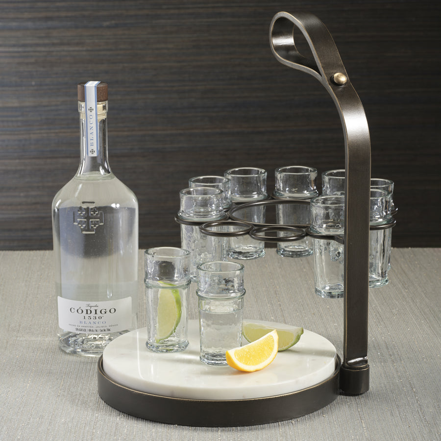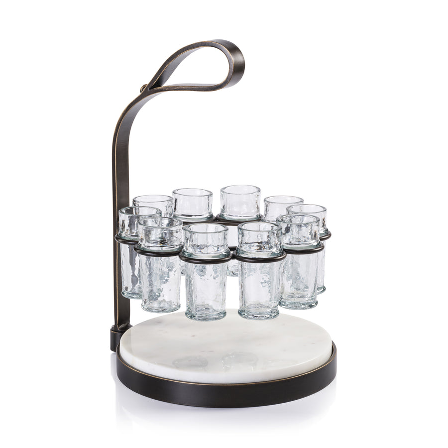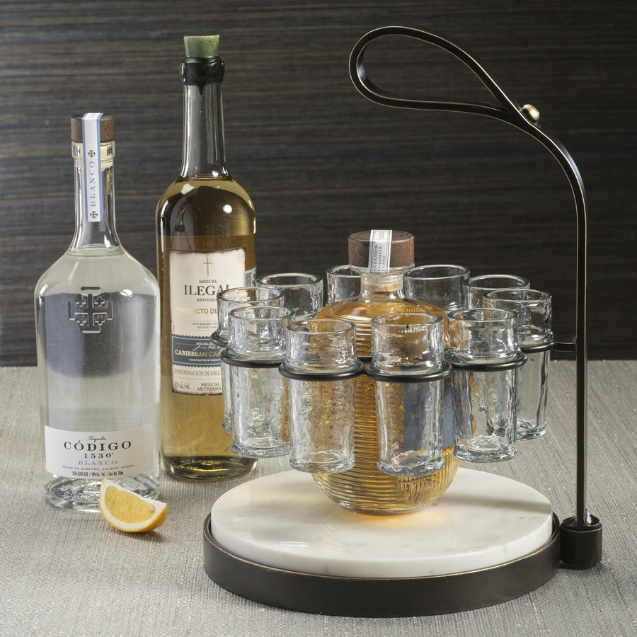 Tequilero 10 Shot Tequila Set with Marble Cutting Board - Dark Bronze